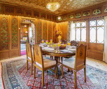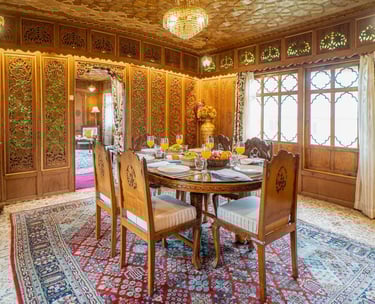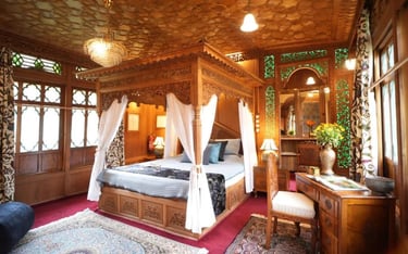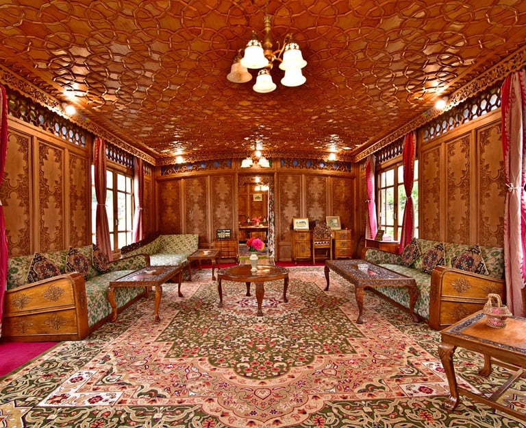 Experience unparalleled luxury on our exquisite houseboat, featuring stunning views of Nigeen Lake, elegant interiors, and all the comforts you need for a memorable stay.