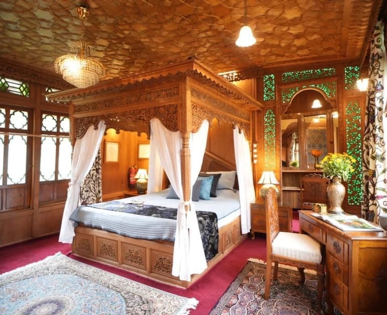 Discover the rich legacy of the Wangnoo family in our heritage houseboat room, blending traditional charm with modern amenities for an unforgettable experience on the water.